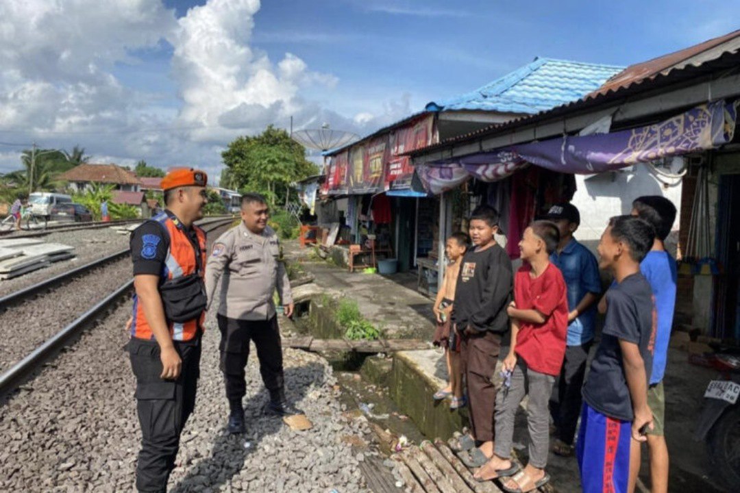 Polsuska bersama Babinkamtibmas melakukan sosialisasi dan edukasi kepada masyarakat untuk tidak beraktivitas di sekitar jalur rel.
